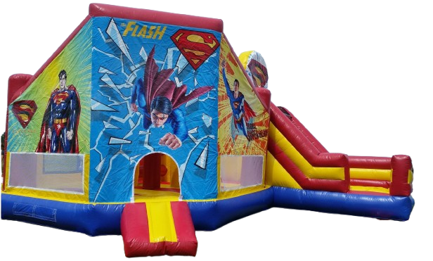 Cette version plus grande de la promenade volante, possède une glissade et un espace de saut. De plus, une petite échelle permet de grimper facilement à la glissade. Dans l’air de saut, il y a un panier de basket pour les amuser davantage.