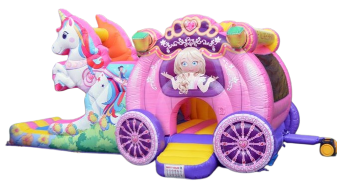 Jeux sous le thème des licornes avec un espace pour sauter et s'amuser. Terminer votre tour par glissade double. Excellent pour les enfants de 3 ans et plus