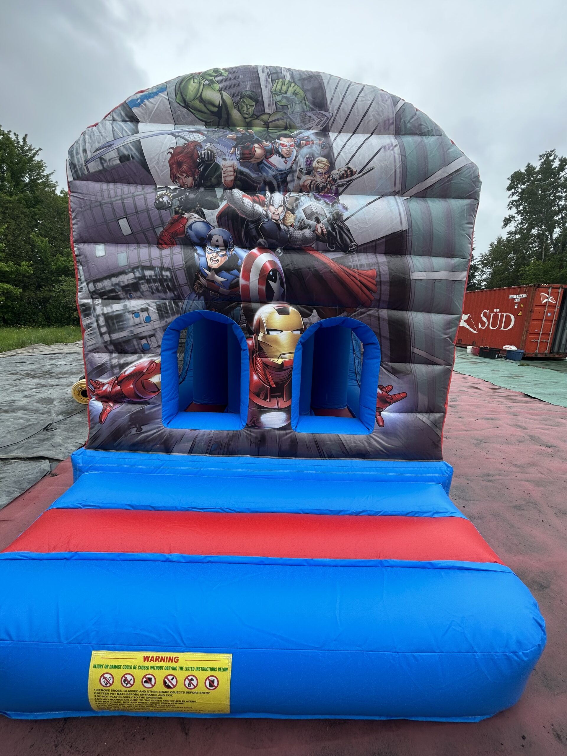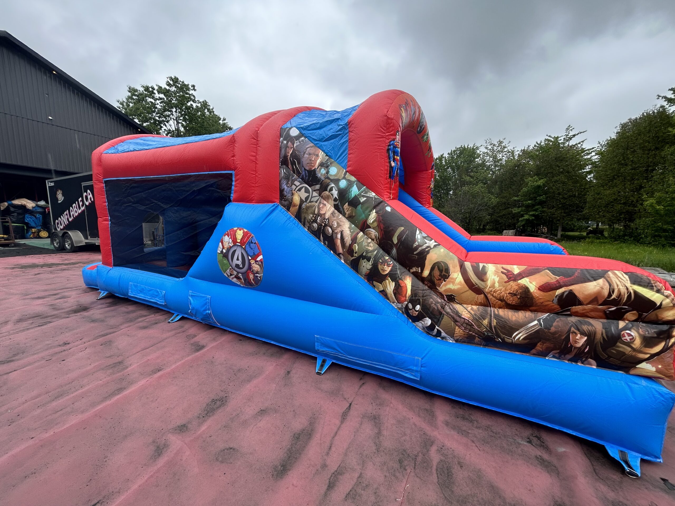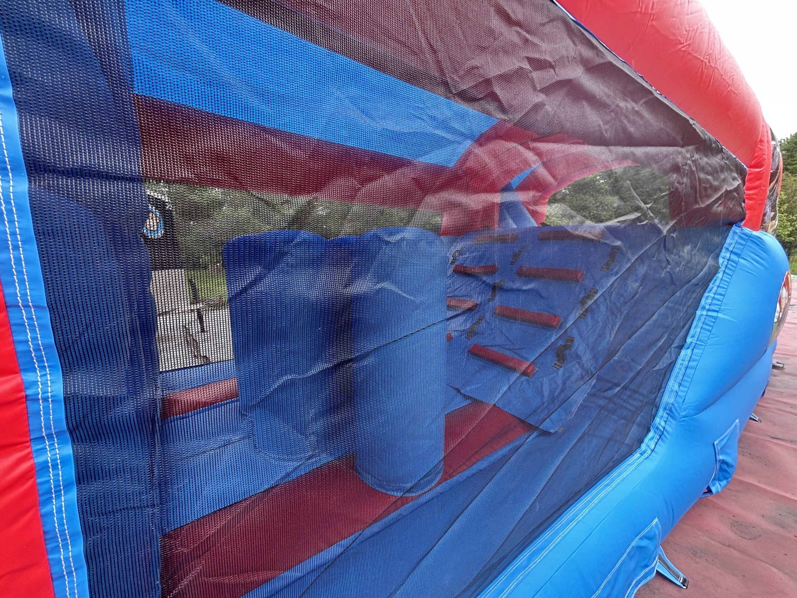 Idéal pour les journées chaudes, ce jeu est formé d'un sautoir et d'une glissade . Il est également muni d'un petit mur d'escalade à l'intérieur pour grimper jusqu'à la glissade. Il est sécuritaire pour vos enfants grâce aux filets installés en haut de la glissade et de chaque côté du sautoir. Il fera vivre une vraie aventure à vos enfants et ses amis, le moment d'une fête.