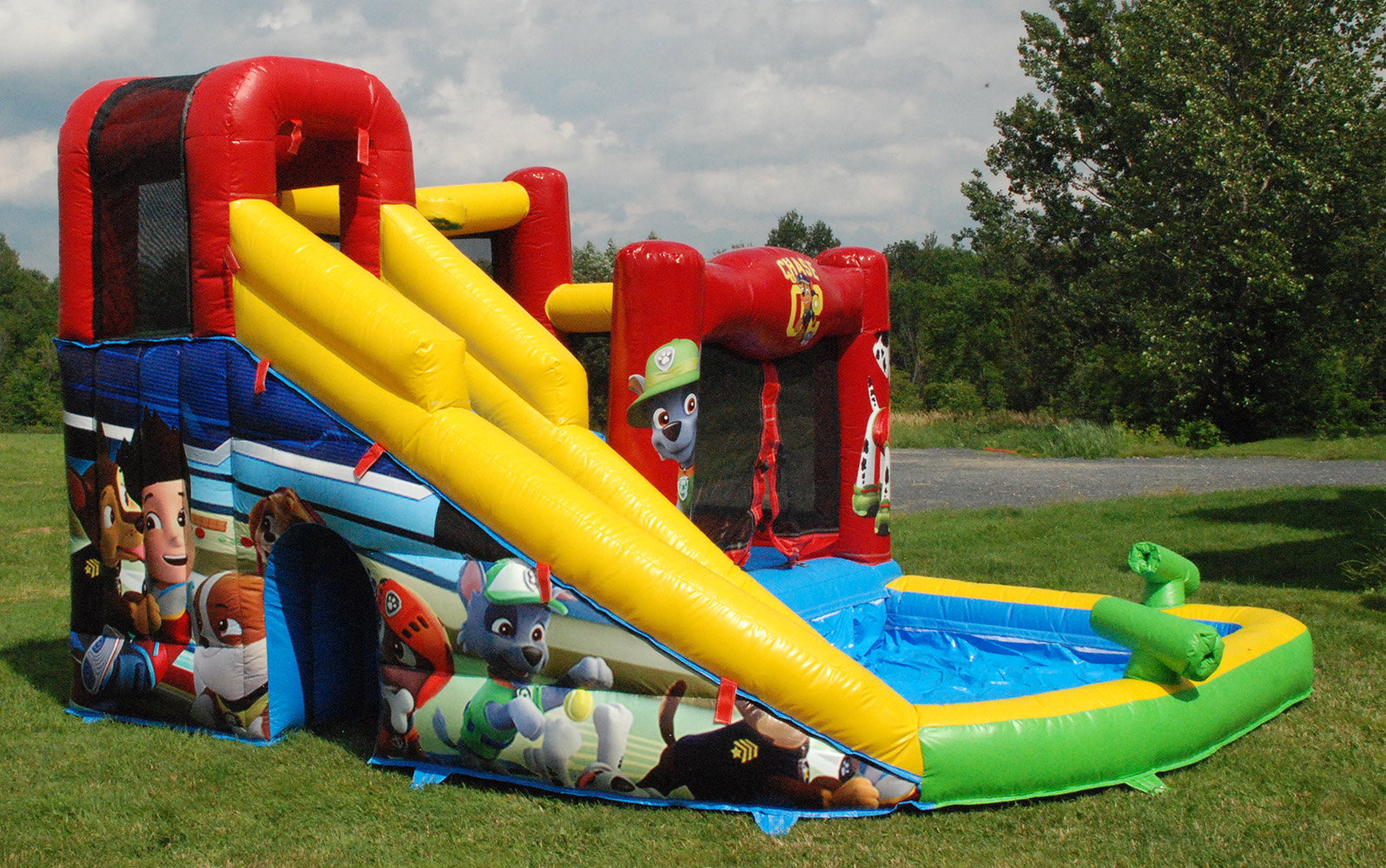 Plongez dans l'amusement avec notre jeu d'eau gonflable! Ce chef-d'oeuvre offre une grande glissade pour une descente enivrante dans un bassin d'eau rafraîchissant. Les enfants adoreront rebondir, grimper et jouer au basket, puis s'arroser avec les fusils à eau au bas de la structure. Ce jeu d'eau est parfait pour les journées chaudes d'été et peut être utilisé avec ou sans eau. Il est sûr de faire le bonheur des enfants de tous âges avec des heures de plaisir et de rafraîchissement garantis!