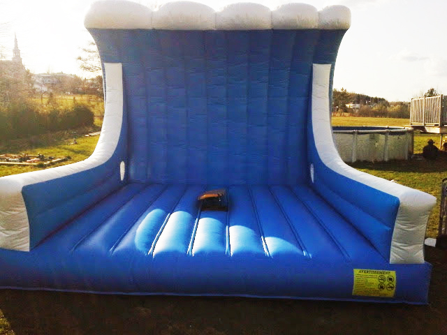 Ce module gonflable interactif s’adresse aux 10 ans et plus. Le participant prend place sur une planche de surf (qui est solide).